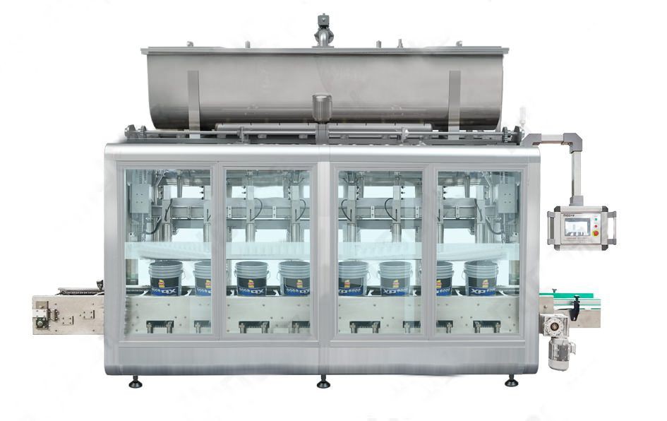 本系列灌裝機采用國外先進傳感器與稱重反饋儀表控制,灌裝精度更高,主要適用1-5L的液體產品的灌裝。采用防滴漏與拉絲的灌裝