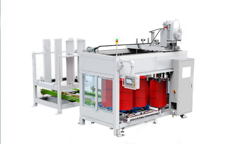 移載式碼垛機是將200L桶按一定排列碼放在托盤 上,自動輸出,便于運輸至廠庫存儲,實現智能化操作管理,可減少勞動人員和減低
