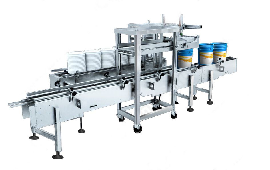 本機(jī)是專為廣口桶的自動上蓋、壓蓋開發(fā)的設(shè)備。集儲蓋、自動分蓋、定向上蓋、壓蓋等功能與一體。本機(jī)為定向上蓋,進(jìn)而保證桶蓋與桶身提手、標(biāo)