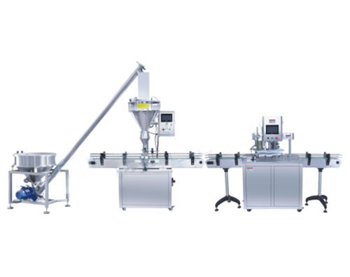 粉末灌裝旋蓋流水線集粉劑充填旋蓋、電磁感應(yīng)封口、雙面貼標(biāo)、噴碼等功能為一體,自動(dòng)完成粉劑的充填包裝過程。該聯(lián)動(dòng)線為顆粒粉狀等物料自動(dòng)計(jì)量灌裝旋蓋貼標(biāo)流水線,具有自動(dòng)送罐、上料、計(jì)量、灌裝、旋蓋、封口、貼標(biāo)、噴印等功能。所有與物料接觸部分均為不銹鋼,整線由PLC控制,伺服電機(jī)計(jì)量,具有精度高、速度快、貼標(biāo)準(zhǔn)確、噴碼清晰準(zhǔn)確等優(yōu)點(diǎn),自動(dòng)粉劑灌裝機(jī)適用于大多數(shù)粉末產(chǎn)品和特別產(chǎn)品的灌裝、旋蓋、貼標(biāo)等包裝。