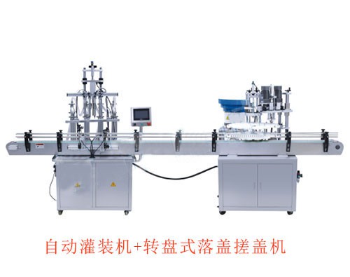 自動灌裝機+轉盤式落蓋搓蓋機