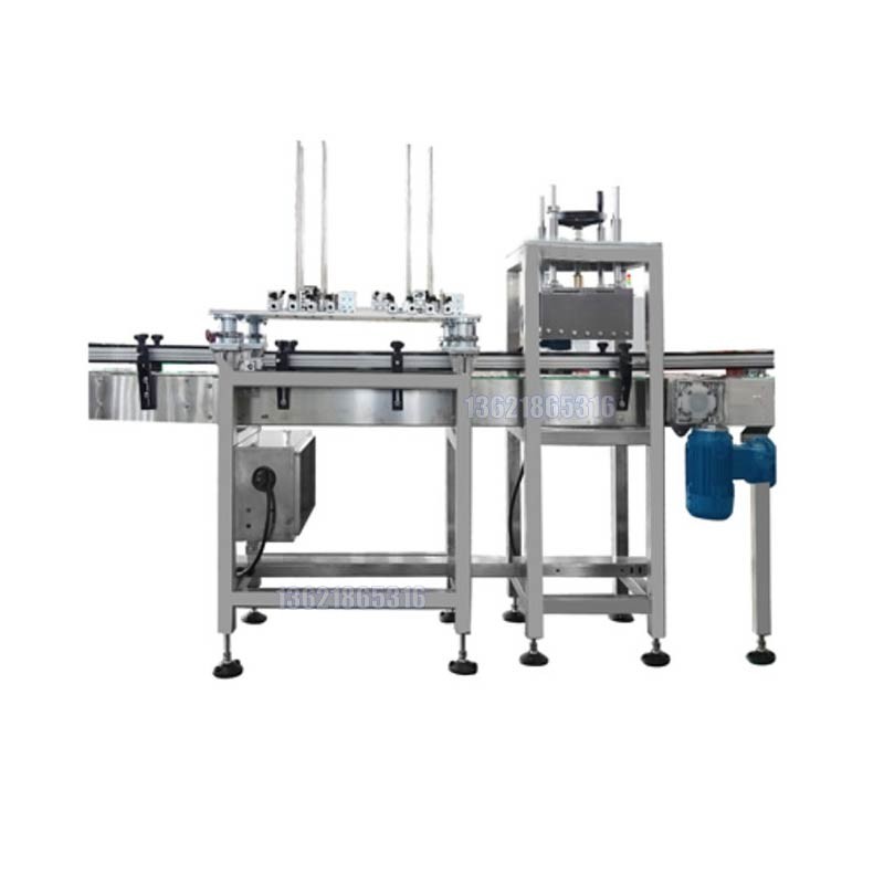 工作流程:啟動-顯示屏上設置要灌裝的重量,然后按啟動鍵,把桶放在灌裝區,自動感應開始灌裝,灌裝過程實現快加,慢加,確保灌裝的度,到達設置的重量自動停止,然后推開放上蓋子,推到壓蓋區,自動感應壓蓋,壓蓋完成出產品。