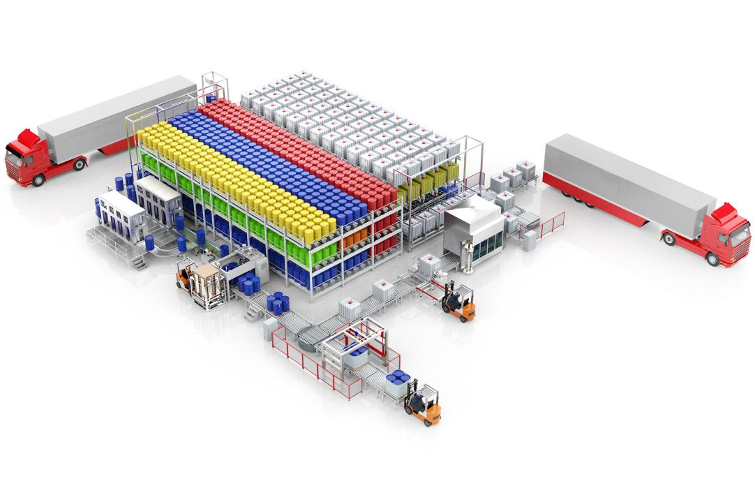 200L鋼桶、IBC桶全自動立體倉庫管理系統是一種高度自動化的存儲系統,它能夠有效地管理和存儲200L鋼桶和IBC桶。這種系統通常包括以下幾個主要組成部分:來車卸桶、自動200升桶提升機、自動供棧機、200升鋼桶移栽碼垛機、200升桶(托盤式)IBC桶庫、全自動視覺定位一體機組、自動上防水蓋、自動貼標機、在線自動纏繞膜機、叉車運轉入庫等。