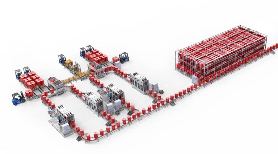 自動化存儲和取出:系統(tǒng)可以自動將200L鋼桶和IBC桶存放到倉庫的指定位置,并在需要時自動取出它們。
