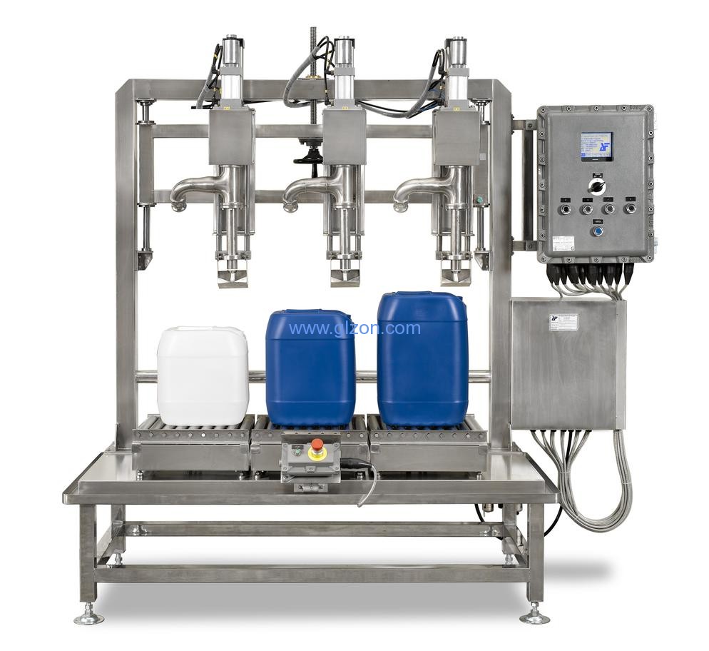 三頭20升自動灌裝機 20升防爆灌裝機使用于化工各種液體的自動灌裝機。