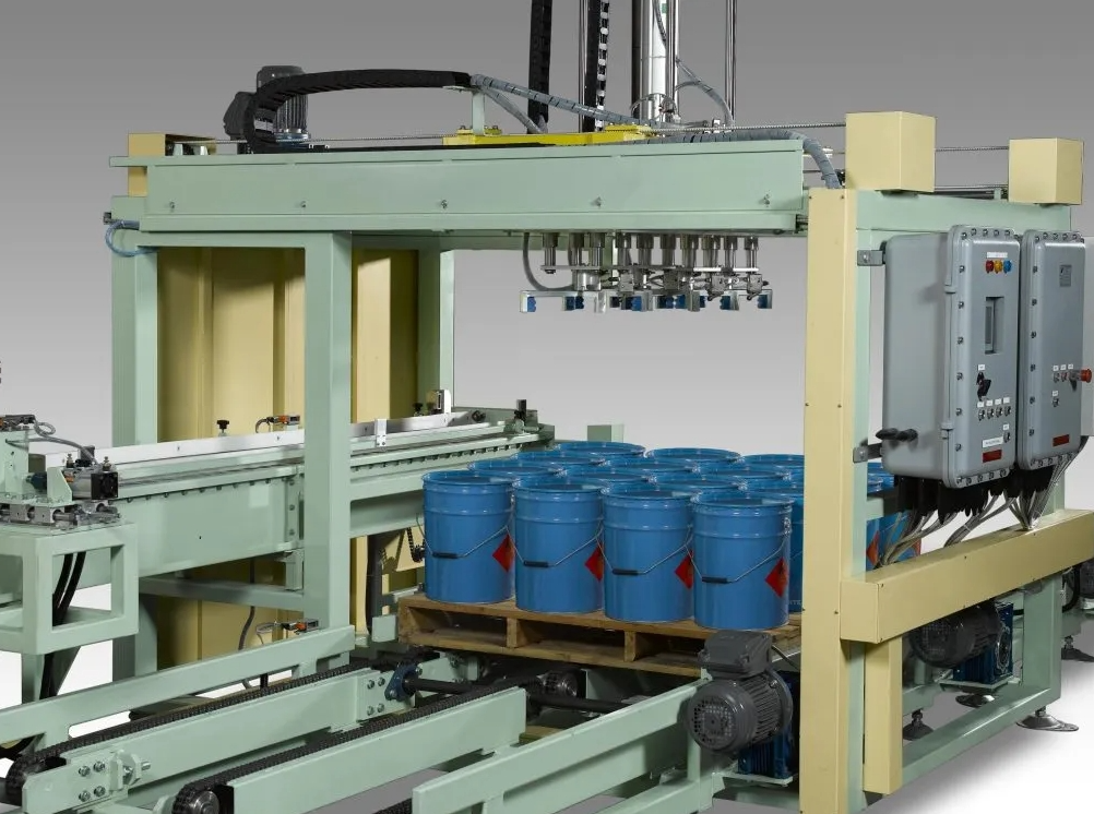 Shanghai Guangzhi PP-800 Series delivers 180 pails/hour with ±1mm placement accuracy for 5-200kg steel/plastic containers. Featuring ATEX Zone 2 certified robotics, adaptive V-grip tooling, and AI pattern optimization, it achieves 99.8% stack stability while reducing labor costs by 70% in chemical, lubricant, and food processing facilities.