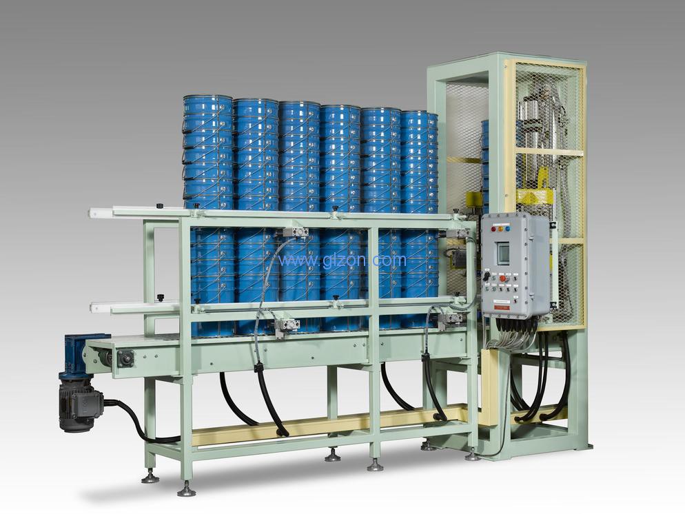全自動碼垛系統:全自動灌裝機灌裝好物料的包裝桶經過密封包裝,傳遞到自動堆垛機下。自動堆垛機通過專業機械手,將裝滿物料的包裝桶準確吸取并放置到設定的托盤內。當托盤內桶的個數達到指定數目,機械手會自動將放置完桶的托盤運輸到指定位置。此項技術不僅能讓灌裝節省了人工成本80%以上,減少了人為浪費和環境污染,同時ji大加快了生產速度,整個灌裝的過程變得更加輕松、精確和專業。