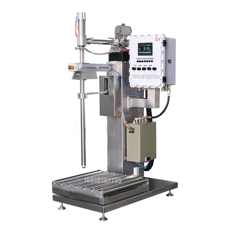 200KG灌裝機_香蕉水灌裝機_國外技術_灌裝頭單獨控制_無罐不出料?本公司主營:灌裝機:液體灌裝機,膏體灌裝機,食用油灌裝機,防凍液灌裝機,西林瓶灌裝機,口服液灌裝機,真空包裝機,液體包裝機,粉劑包裝機,顆粒包裝機。200KG灌裝機_香蕉水灌裝機_國外技術_灌裝頭單獨控制_無罐不出料的參數:?1.灌裝容量: 60-200KG2.灌裝重量:200KG3.分 度 值:50g4.灌裝方式:采用半液下兩段式5.安裝方式:地上式6.灌裝允許誤差:0.1%F.S.7.單機灌裝速度:38-42桶/小時(管路內物料流速應保證達到200L/分鐘)8.設備主體要求碳鋼烤漆,原料接觸面為SUS304不銹鋼9.液面式半自動灌裝系統10.與客戶現場供料設備作聯鎖控制11.灌裝機前方為泵浦供料12.灌裝現場要求防爆Exde II BT4 Gb200KG灌裝機_香蕉水灌裝機_國外技術_灌裝頭單獨控制_無罐不出料的特點:?·輸桶、出桶、灌裝PLC控制,微動開關定位,連續自動完成。·灌裝頭自動旋轉,自動伸入桶口。·灌裝頭防滴漏,防飛濺設計。·可設定和存儲三十組配方。·自動去皮,稱重數值即時顯示。·加料快/慢二級速度。·緊急停止/斷電二重保護。·自動警報。·自動控制供料泵功能。·手動/自動可選。200KG灌裝機_香蕉水灌裝機_國外技術_灌裝頭單獨控制_無罐不出料設備使用:?操作流程:開機---(選擇A/B槍)---人工放桶至秤臺---按【開始】鍵---灌槍自動插入桶口---自動去皮---自動打開灌槍及球閥組開始灌裝---大、小、微量三段灌裝---到達目標值---灌槍自動關閉并升至桶外---灌裝完成。200KG灌裝機_香蕉水灌裝機_國外技術_灌裝頭單獨控制_無罐不出料適用范圍:?該灌裝機廣泛適用于食品、日化、醫藥、油脂等各行業,可灌裝不同液體類產品。200KG灌裝機_香蕉水灌裝機_國外技術_灌裝頭單獨控制_無罐不出料售后服務:?售前:技術團隊根據您的需求量身定制解決方案。售中:全程跟蹤研發、生產每一個環節,嚴格把控每道 工序,確保產品合格后出廠。售后:24小時響應,健全的維護和故障排除機制。上海廣志自動化設備是專業生產200升灌裝機的廠家,歡迎廣大客戶前來咨詢,電話021-60518382 上海廣志自動化設備是專業生產200升灌裝機的廠家,歡迎廣大客戶前來咨詢,電話021-60518382 上海廣志自動化設備是專業生產200升灌裝機的廠家,歡迎廣大客戶前來咨詢,電話021-60518382