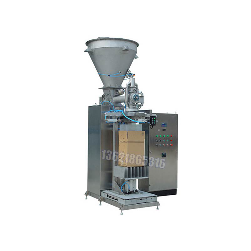 ? 將噸包裝袋套在加料嘴上,將包裝袋四角掛在氣缸上,按動“開始”按鈕,這時壓袋氣缸開始工作并壓住袋口,氣缸將包裝袋四角撐開,控制器將包裝袋重量自動去除,螺旋轉動迅速將物料灌入袋中,振動臺開始振動將物料振實,隨袋中空氣一起溢出的粉塵通過吸塵器由除塵器吸走,待加料快到設定值時,螺旋轉速減速慢加,振動停止,到設定值時,加料停止。這時壓袋氣缸松開袋口,氣缸將包裝袋四角松開,鏟車將包裝袋送出。
