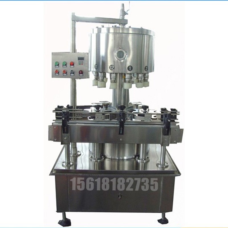 液體灌裝機 灌裝機、液體灌裝機、灌裝機價格、定量灌裝機:  該系列灌裝機適用于不含二氧化碳氣體的酒、飲料、調料及其它液體的玻璃瓶定量灌裝?! ?、高精度:標定容量為500毫升時,平均誤差±1.5毫升?! ?、高速度:每閥250-300瓶/小時,無級變速?! ?、大容量:灌裝量可在150-750毫升之間調整?! ?、大范圍:更換撥瓶輪能適應多種瓶型,方便快捷?! ?、無破瓶:設有彈性托瓶裝置,不受瓶