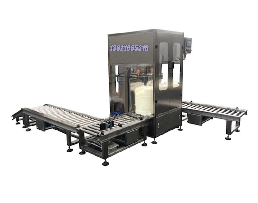 應用案例YCS-100型高灌稱重式灌裝機,原理是由稱重傳感器平臺在PLC的控制下設定計量.是高精度,高技術產品,是集機、電、儀一體化的新型機種,它改變了傳統流量計式灌裝機定量精度及無法對較粘液體的計量缺陷。是文明生產和國家明令規定淘汰杠桿秤后,融稱重與灌裝一體化的理想設備,灌裝時先去除皮重, 稱重灌裝機適用于各種有粘、無粘、有一定腐蝕性和無腐蝕性、有泡沫、無泡沫的液體稱重定量灌裝。高灌全自動灌裝壓蓋線工作流程:人工放桶-自動滾筒輸送-自動定位-自動稱重灌裝-自動滾筒輸送。功能特點1.控制系統:工業電腦(PLC)/電子-氣動控制2.操控面板:“智能型”彩色觸摸屏人機操作界面3.灌裝精度:±0.2%(千分之二)4.灌裝方式:液面上灌裝(頂部灌裝)。5.容量調整:電腦控制自動稱重計量傳感調整。6.容器輸送:不銹鋼304機架、不銹鋼異型板鏈式可變速自動輸送帶,配有光電傳感及工業電腦自動程序控制閘門。7.全自動控制“防噴濺、防滴漏”系統。8.全自動控制“無桶或缺桶不灌裝”系統。9.全自動控制“電腦控制、電子稱重計量傳感調整”系統。10.全自動控制“對位、灌裝、輸送”系統。11.全自動控制“報警和安全防范”系統。12.優質不銹鋼304框架、有機玻璃“安全操作防護罩”。13.具備數字式顯示灌裝量的功能,可完成多種灌裝量的設置。14.具備自動去皮,按凈重灌裝的功能。15..具備真空回抽防滴漏的功能,高黏度物料需要更換成回收槽。16.具備控制系統手動和自動(微動開關控制)功能。17.具備快慢雙速控制功能,防止飛濺。18.具備防止誤操作和斷電保護等緊急處理功能。19.液體流經管道為不銹鋼304材質。20.密封件采用硅橡膠(耐磨損、耐高溫、耐酸堿、耐腐蝕),氟橡膠(耐磨損、耐強酸堿、強腐蝕)。【根據實際物料屬性溫度匹配合適的密封件】型號YCS/100KG-2灌裝頭數量雙頭量程范圍20-100KG灌裝精度±0.2%進料壓力0.3-0.5MPa氣源壓力0.4-0.6MPa耗氣量0.3m3/分鐘電源220V/380V, 50HZ灌裝速度(桶/小時)(水作為測試介質)60-100桶/小時尺寸(L×W×H mm)1500×870×1650(主機)輸送機根據實際空間需求定制直線或轉彎重量(大約)800KG上海廣志自動化設備是專業生產25升灌裝機的廠家,歡迎廣大客戶前來咨詢,電話021-60518382 上海廣志自動化設備是專業生產25升灌裝機的廠家,歡迎廣大客戶前來咨詢,電話021-60518382 上海廣志自動化設備是專業生產25升灌裝機的廠家,歡迎廣大客戶前來咨詢,電話021-60518382