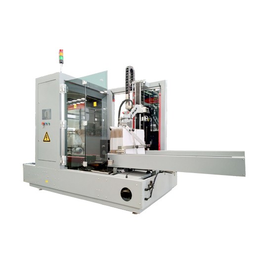 本設備的研發填補了國內立式開箱封底機在開箱能力15-20箱/分鐘上的空缺。本機采用直線立式進箱,不僅有效增大了紙箱存儲量,同時減少了人工的上箱頻率和勞動強度。自動完成開箱、自動折合下蓋、自動密封紙箱底部,采用PLC+人機界面控制,操作方面、維修簡單、性能穩定、是自動化規模生產必不可少的流水線設備。已廣泛應用于食品、醫藥、飲料、油品、日化等各行業。