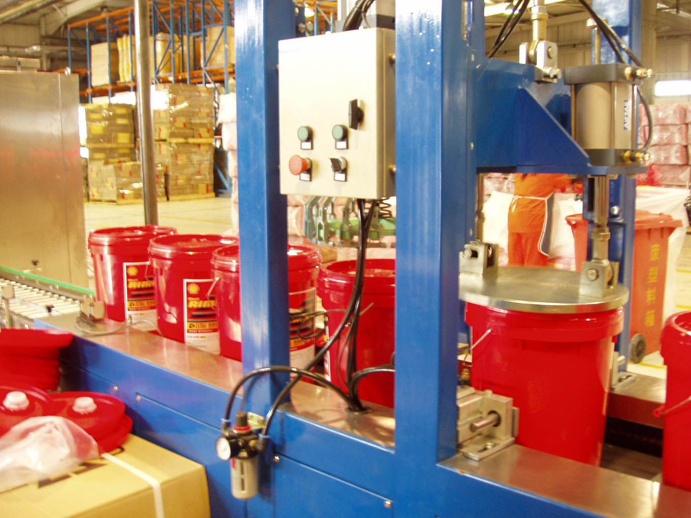 藥、化妝品等行業(yè)的鐵罐壓蓋。設(shè)備用于供蓋、夾桶、傳送、鎖蓋,機器自動化程度高,穩(wěn)定性好,調(diào)節(jié)方便。