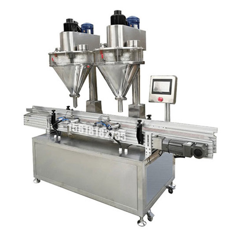 雙頭粉劑調料灌裝機  雙頭粉劑調料灌裝機是一款經濟實用型的瓶裝調料灌裝,設備能完成瓶子自動定位,充填及計量等工作,瓶裝調料灌裝設備由兩個充填頭,一臺鏈板輸送帶及一個定位裝置組成,采用伺服﹙或步進﹚馬達,PLC及觸摸屏控制,操作簡便,穩定性高。雙頭粉劑調料灌裝機外觀為全不銹鋼材質,所有機器結構均是按照食品藥品衛生標準選用設計的,瓶裝調料灌裝設備依據GMP規范標準進行設計,完全滿足國家食品藥品衛生要求
